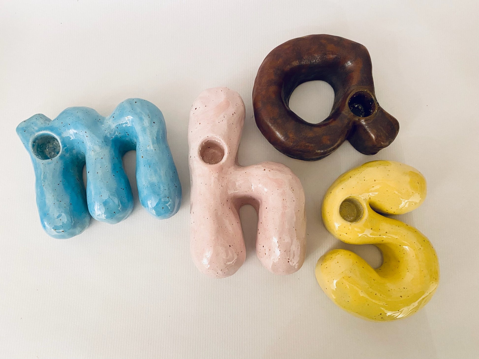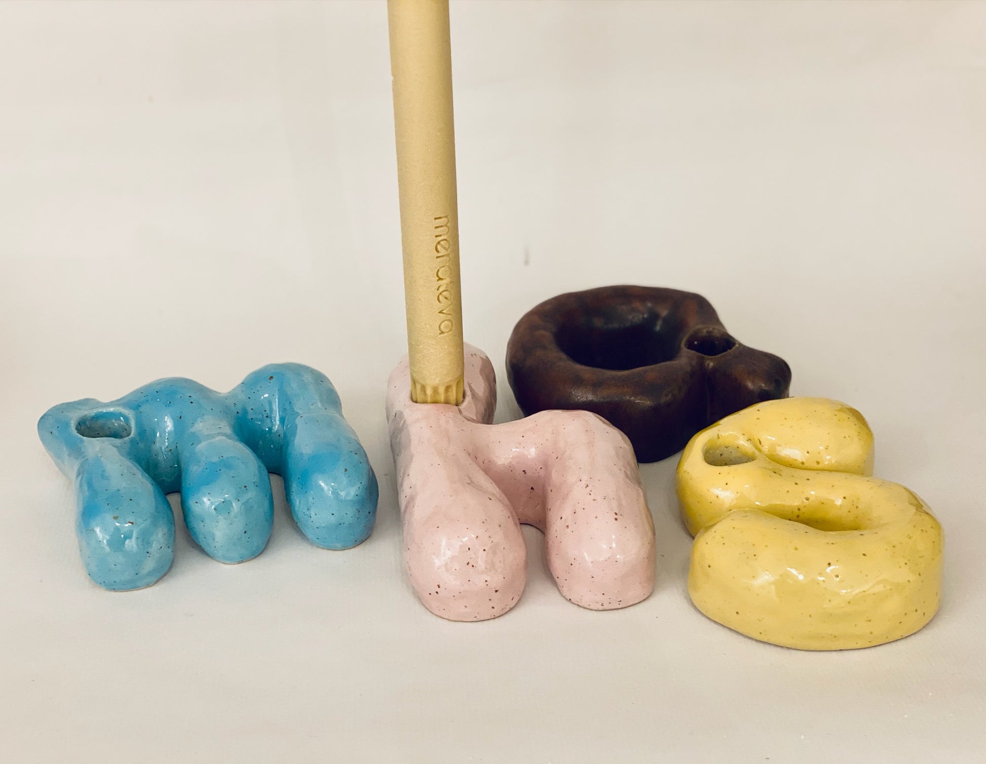 Mörkt konjaksfärgad ljusstake i form av litet a