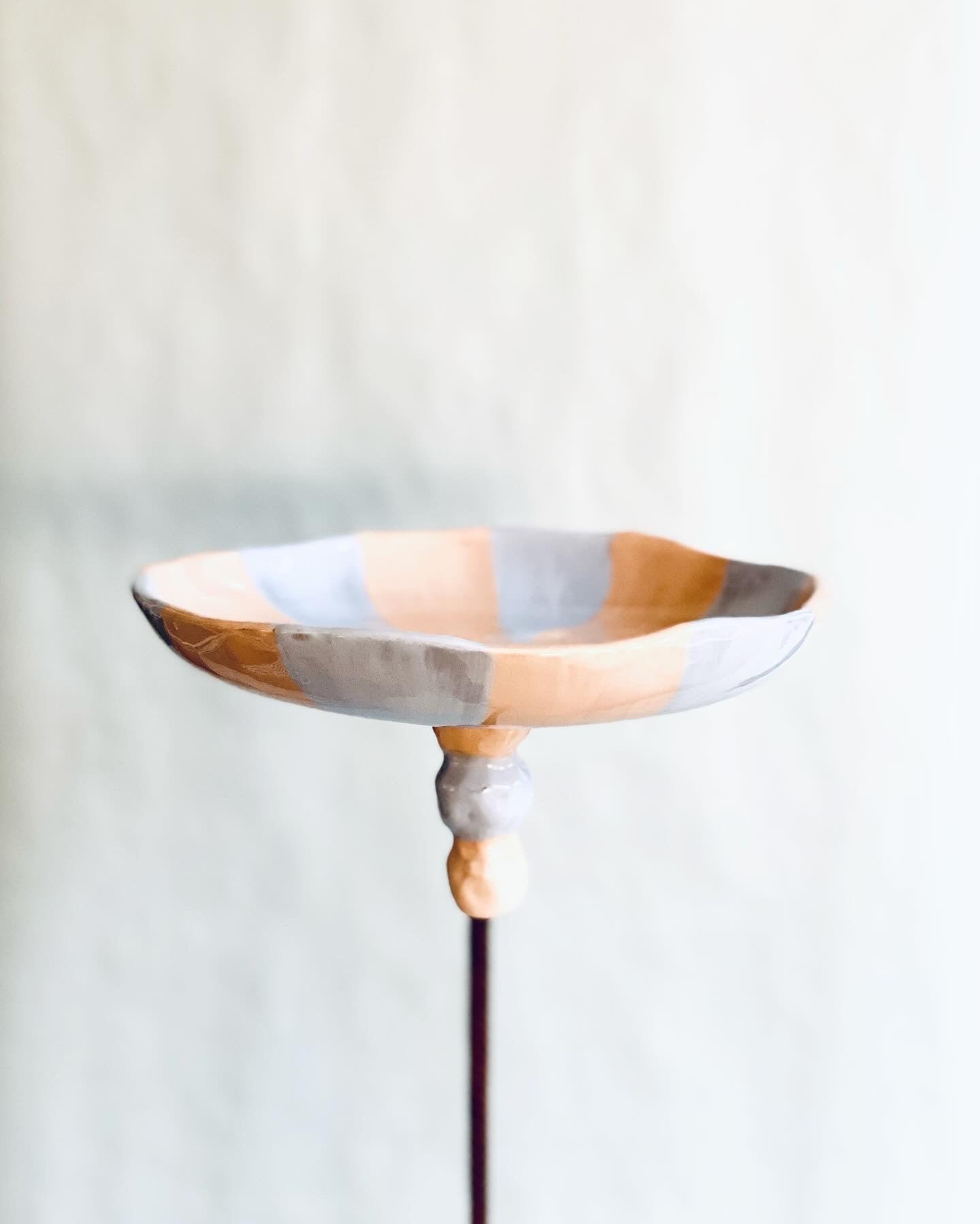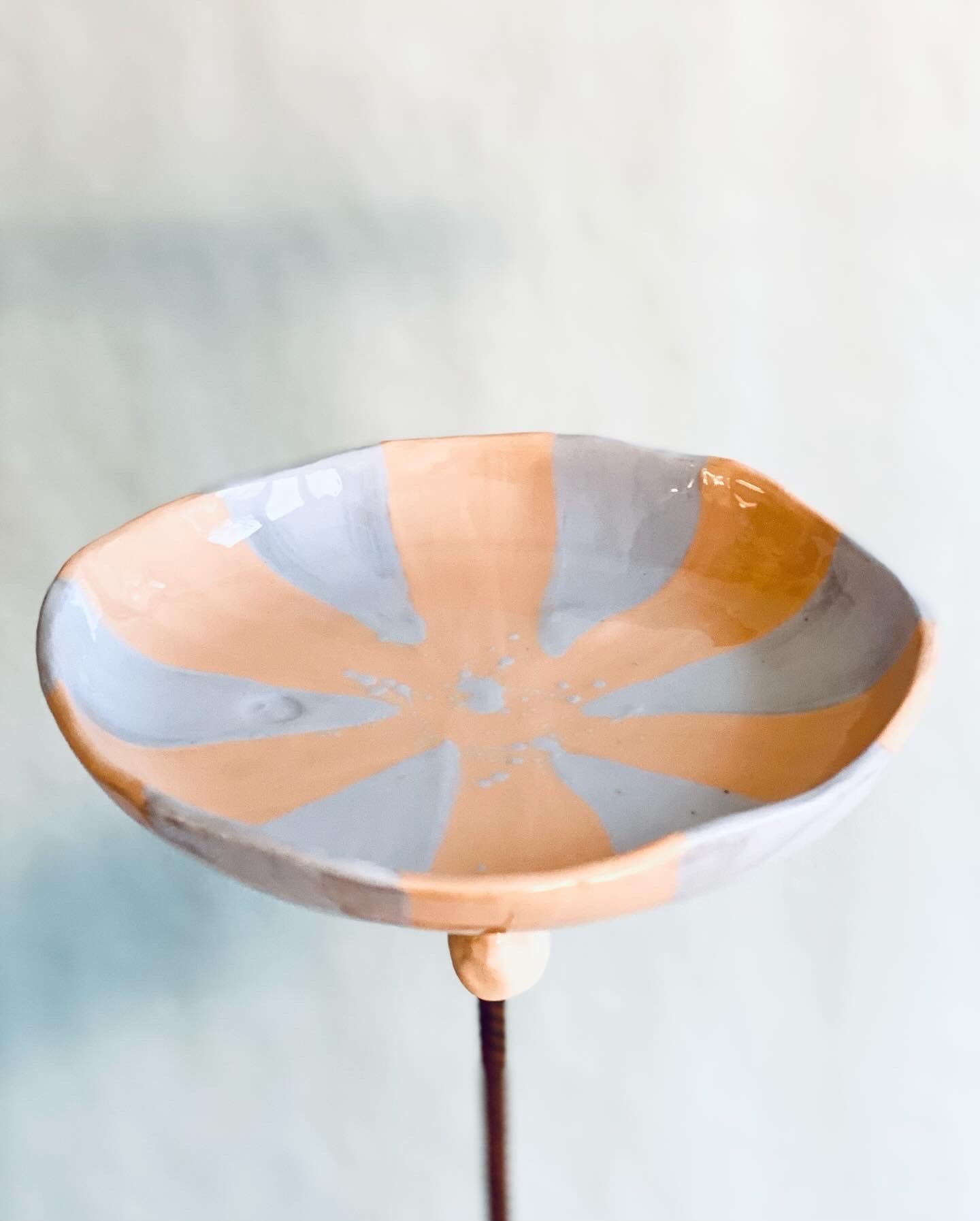 Regnfångare / fågelbad. Ljus orange / pastellblå