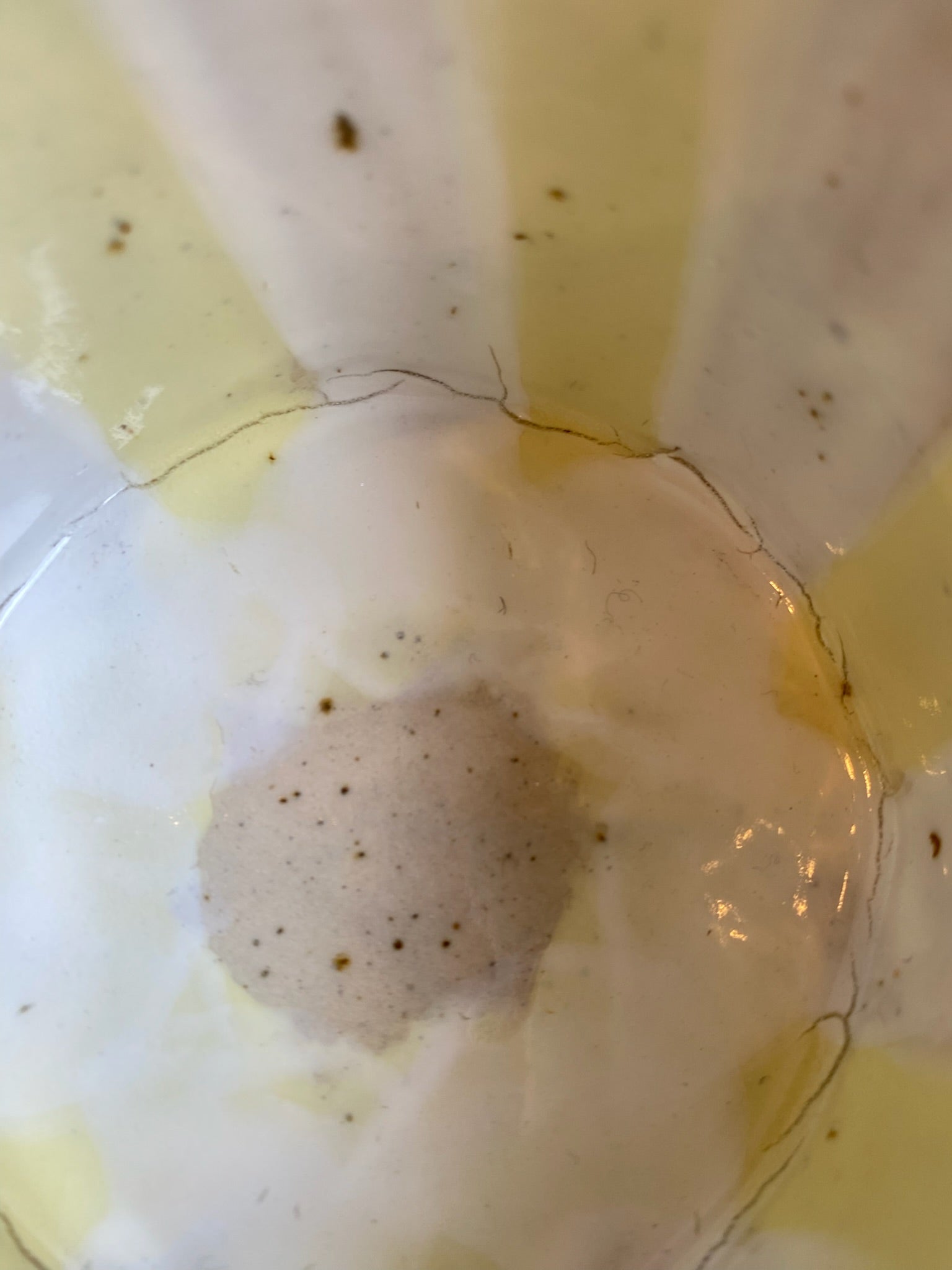 Synliga "sprickor" som ligger under glasyren och påverkar ej funktionen, se bild.