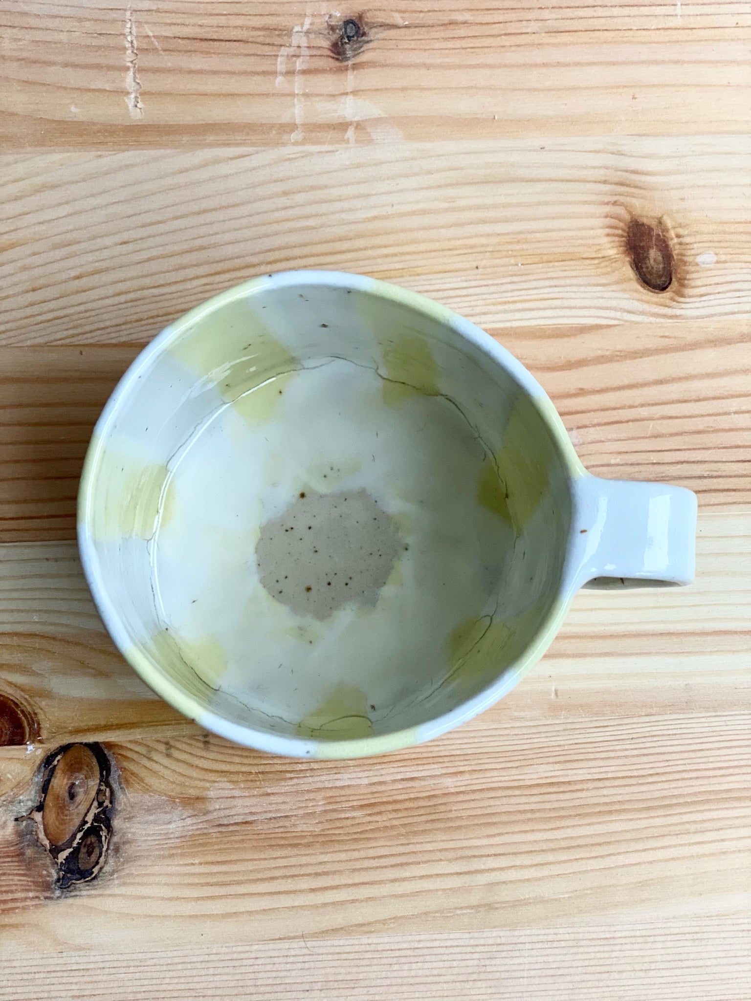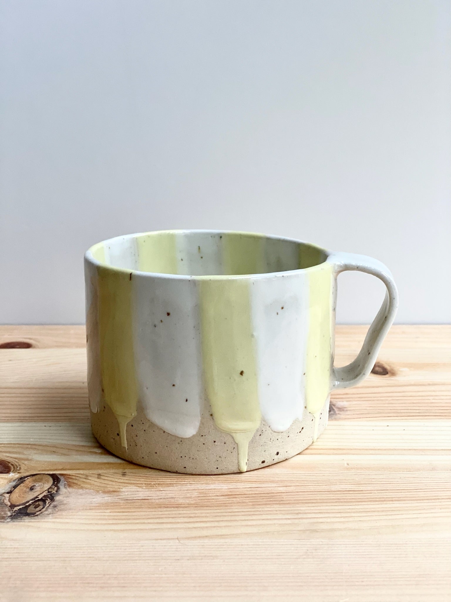 Randig tekopp, pastellgul och vit